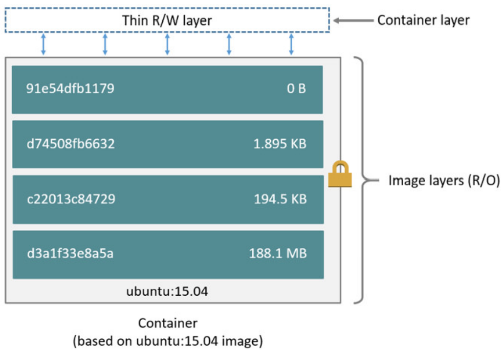该Dockerfile包含四个命令,每个命令创建一个层。 FROM语句从ubuntu:15.04映像创建一个图层开始。 COPY命令从Docker客户端的当前目录添加一些文件。 RUN命令使用make命令构建您的应用程序。 最后,最后一层指定要在容器中运行的命令。 每一层只是与上一层不同的一组。 这些层彼此堆叠。 创建新容器时,可以在基础层之上添加一个新的可写层。 该层通常称为“容器层”。 对运行中 的容器所做的所有更改(例如写入新文件,修改现有文件和删除文件)都将写入此薄可写容 器层。